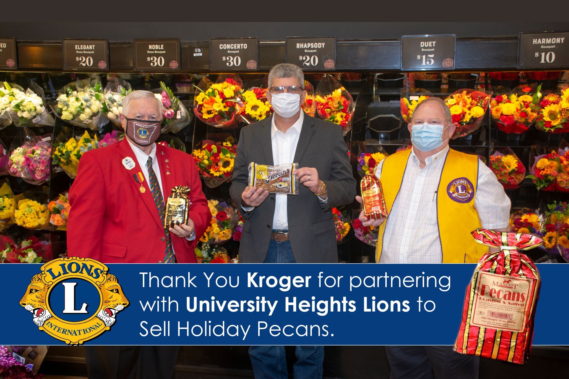 Every year we sell pecans during the holidays to fund our sight and hearing programs. Our club has great partners to help us meet those goals. Kroger along with Bill's fresh markets help us with this effort and we are very grateful for this association.